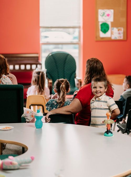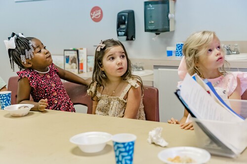 • The group then splits into age based classes for their Bible Story & Snack Time