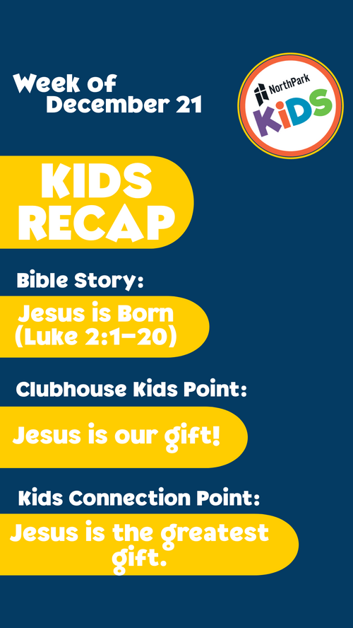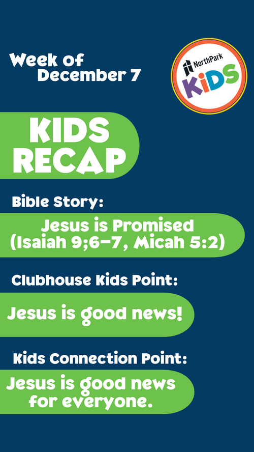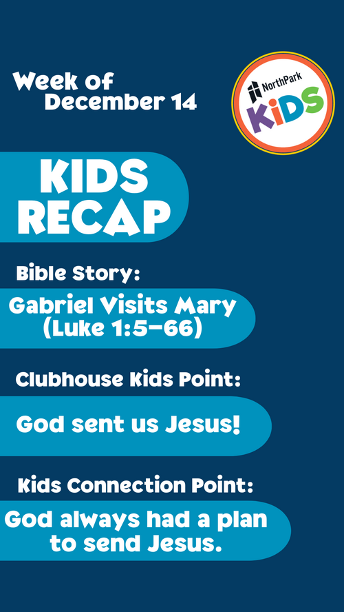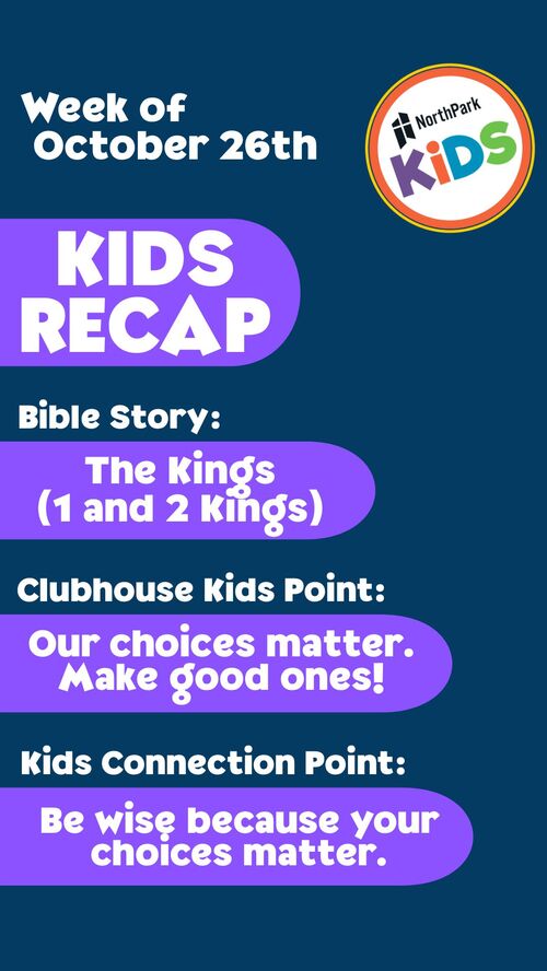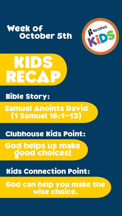 This year, we are going through the Bible chronologically and all kids from our Preschool Clubhouse to our Kids Connection elementary group are all learning about the same Bible story each week. The story & point are either condensed or expanded based on their age group. On the Weekly Recaps, you can see our week's story and the age-appropriate point for each group. So even if your family is made up of a variety of ages, you can review the story together as a family!